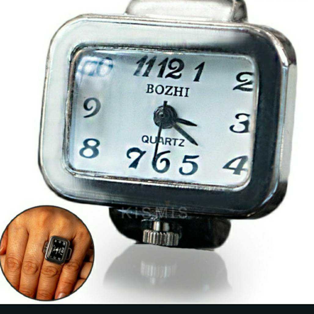 - 新品 未使用 指輪 時計 四角 フリーサイズ 銀 白 5