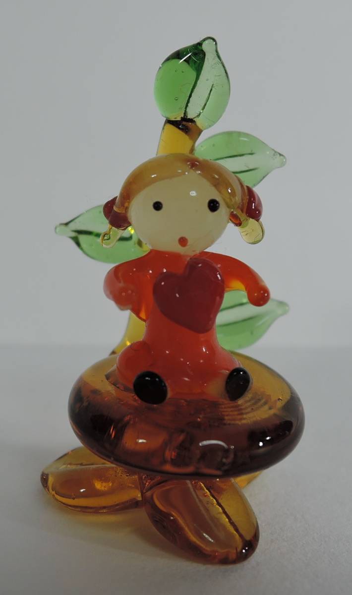 - ☆A09■ガラス細工 ミニ置物 オレンジ服/女の子/ハート/樹木■高さ40mm