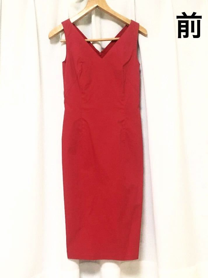 > ★未使用 日本製 赤 ワンピース パーティ ドレス ノースリーブ ワンピース ビドンナ レッド 赤 シンプル スリット 綺麗め 大人 エレガント