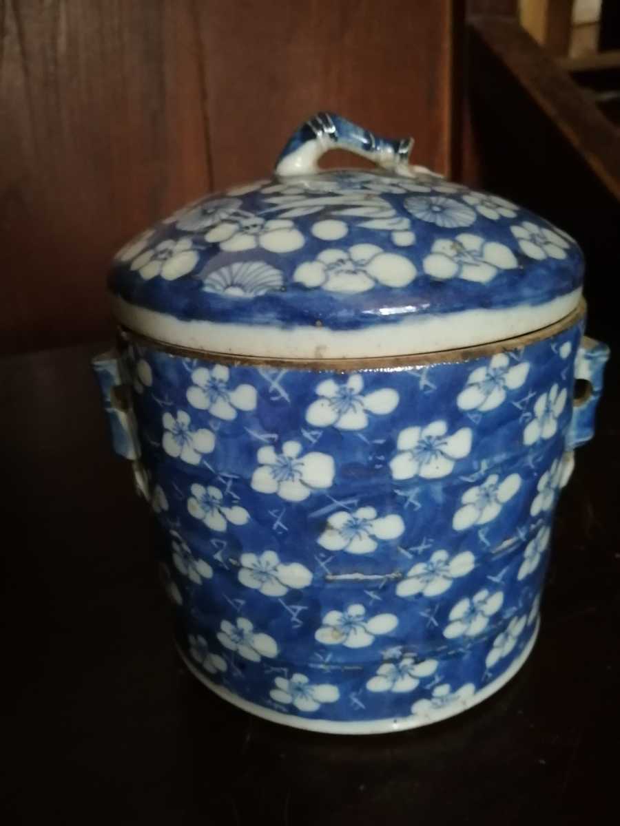 - 染付蓋物 清朝中期 松竹梅文 中国 清朝 染付 菁華 古玩 51CH18u10