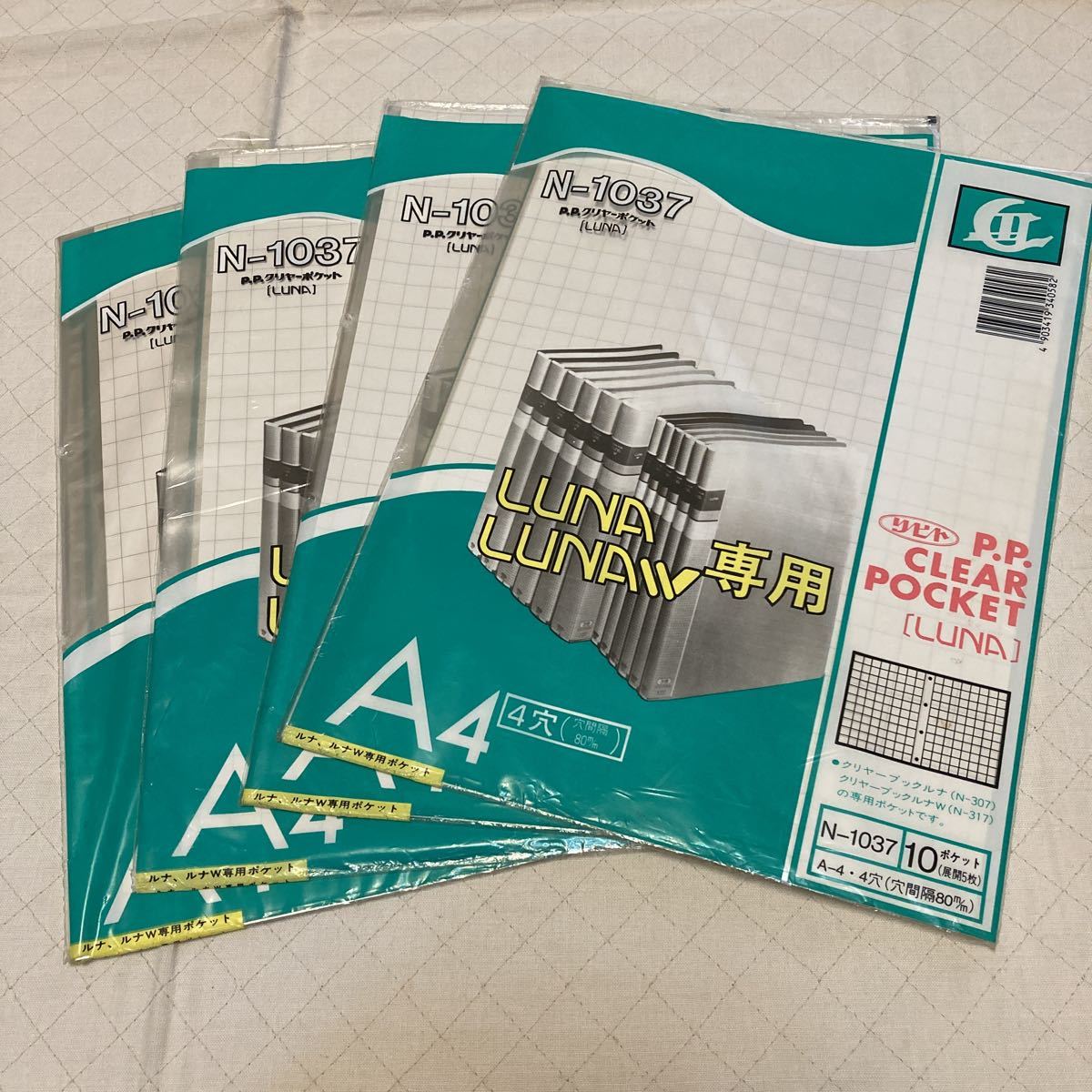 > リヒト クリアブック ルナ ルナW 専用ポケット 昭和レトロ N-1037 4袋 A 4 38ポケット 19枚 送料無料 文房具 ファイリング デッドストック