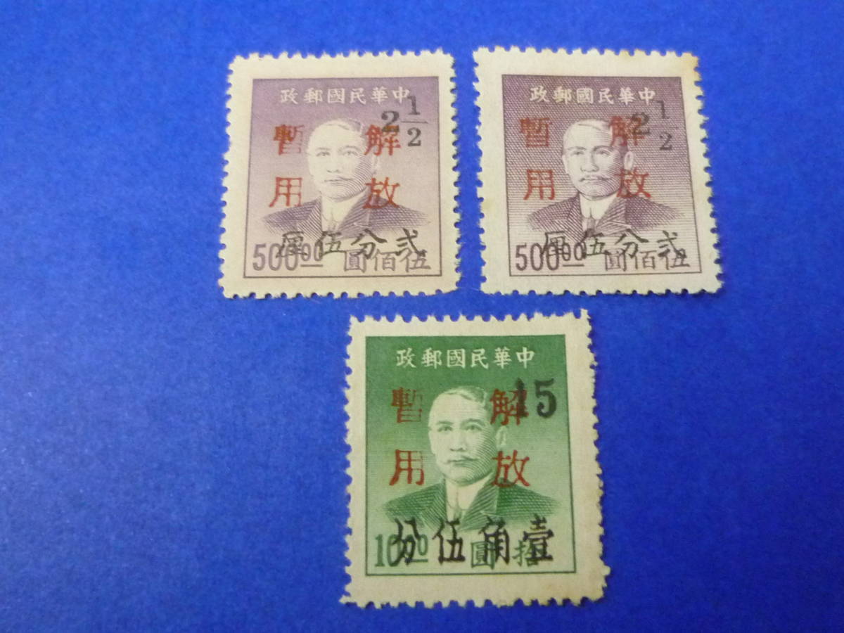 - 22L A №220 中国解放区切手 華南区 1949年 SC#7L6-8 汕頭手蓋暫用 3種完 未使用NH・VF