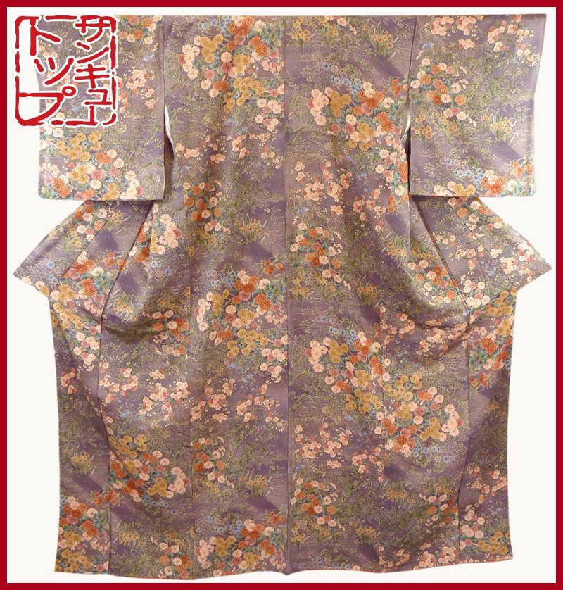 > 【店頭価格15000円の品 在庫処分 大幅値下げ】☆質:39トップ 着物館 680 正絹 小紋 流水秋草文様 中古 お食事会やお稽古などに