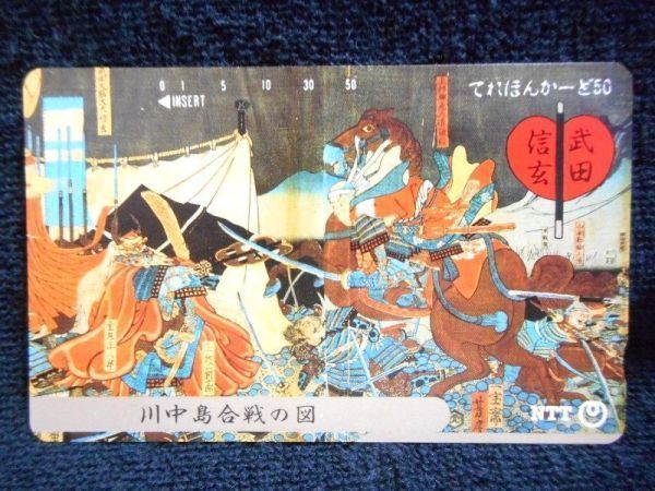 - テレカ 50度 武田上杉 川中島合戦の図 一宝斎芳房 錦絵 T-1072 未使用