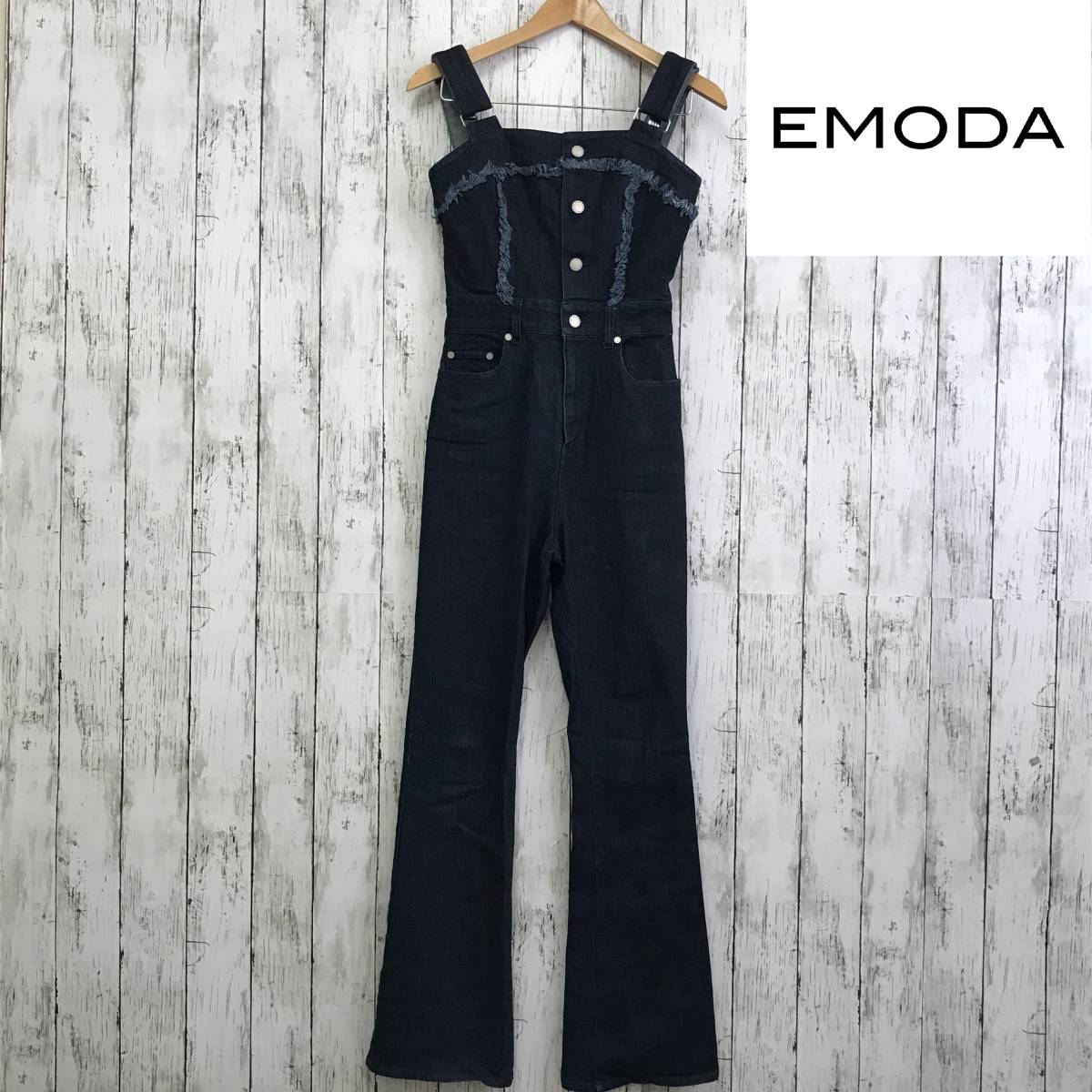 > EMODA エモダ ビスチェフレアデニムサロペット Sサイズ インディゴ 裾はフレアに広がるシルエットで美脚度が抜群 S6-200 USED