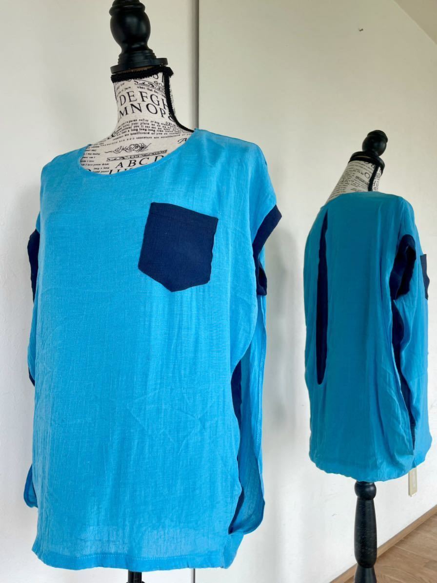 > 送料無料 青 ブルー 半袖 カットソー ゆったり ファッション 個性的 デザイン 人気 カジュアル おしゃれ レディース 韓国 水色 トレンド