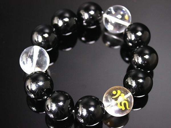 - 極太20mm■高級オニキス&梵字水晶数珠ブレスレット■バン/未申年
