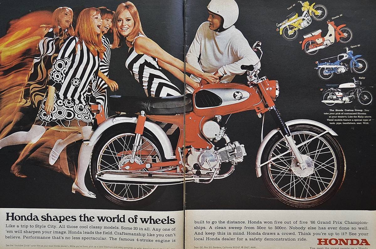 - 稀少!1967年ホンダ・オートバイ広告/Honda/スーパーカブ/旧車/昭和レトロ/J-1