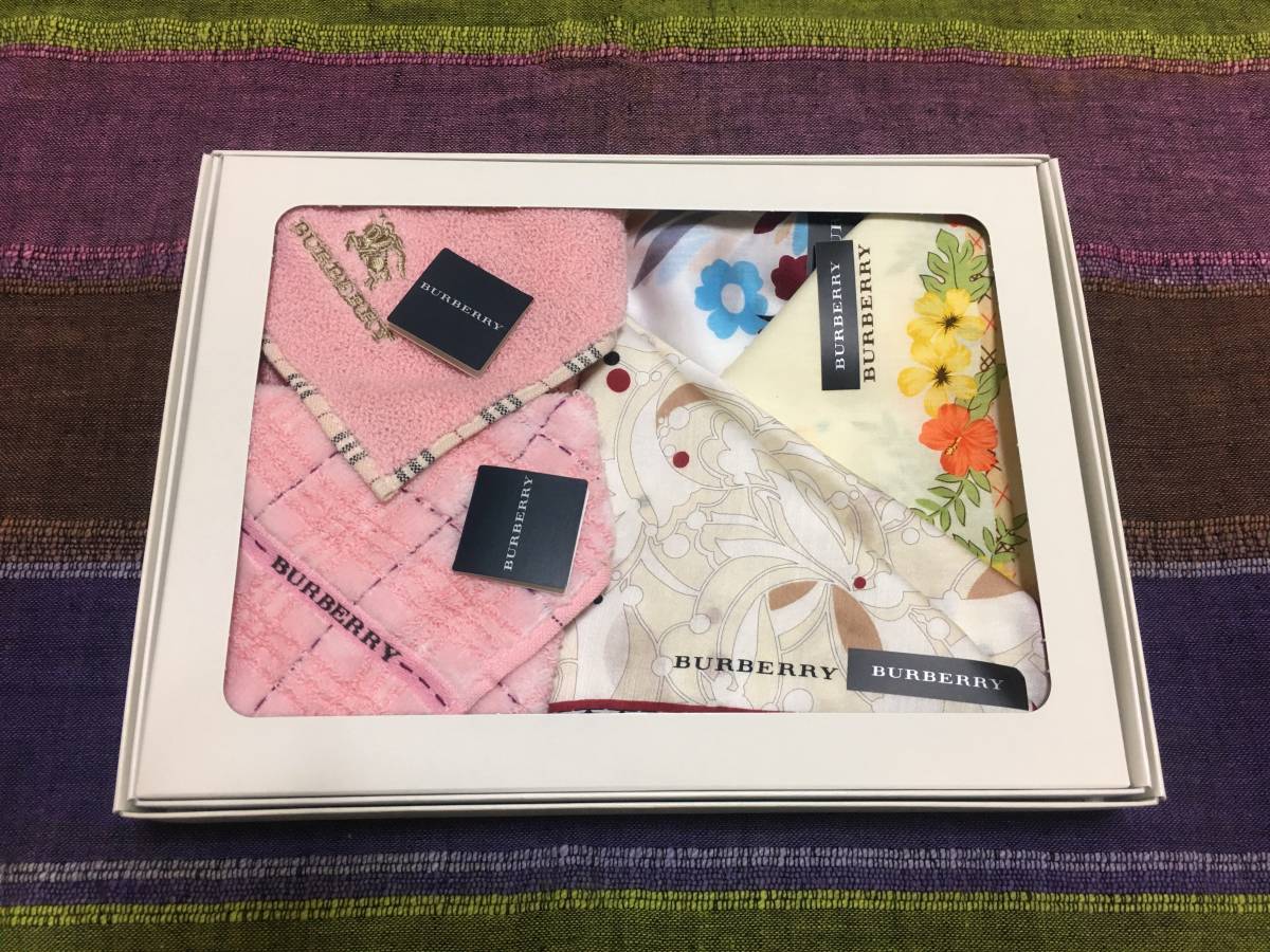 > 新品・未使用 ★ BURBERRY バーバリー ★ ハンドタオル&ハンカチーフセット ★ ギフトケース入り ★ 高島屋