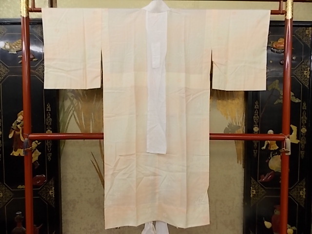 - きもの今昔4241 長襦袢 正絹精華織生地 バチ衿袖無双裏なし仕立て ピンクぼかし 水辺の片輪者染柄