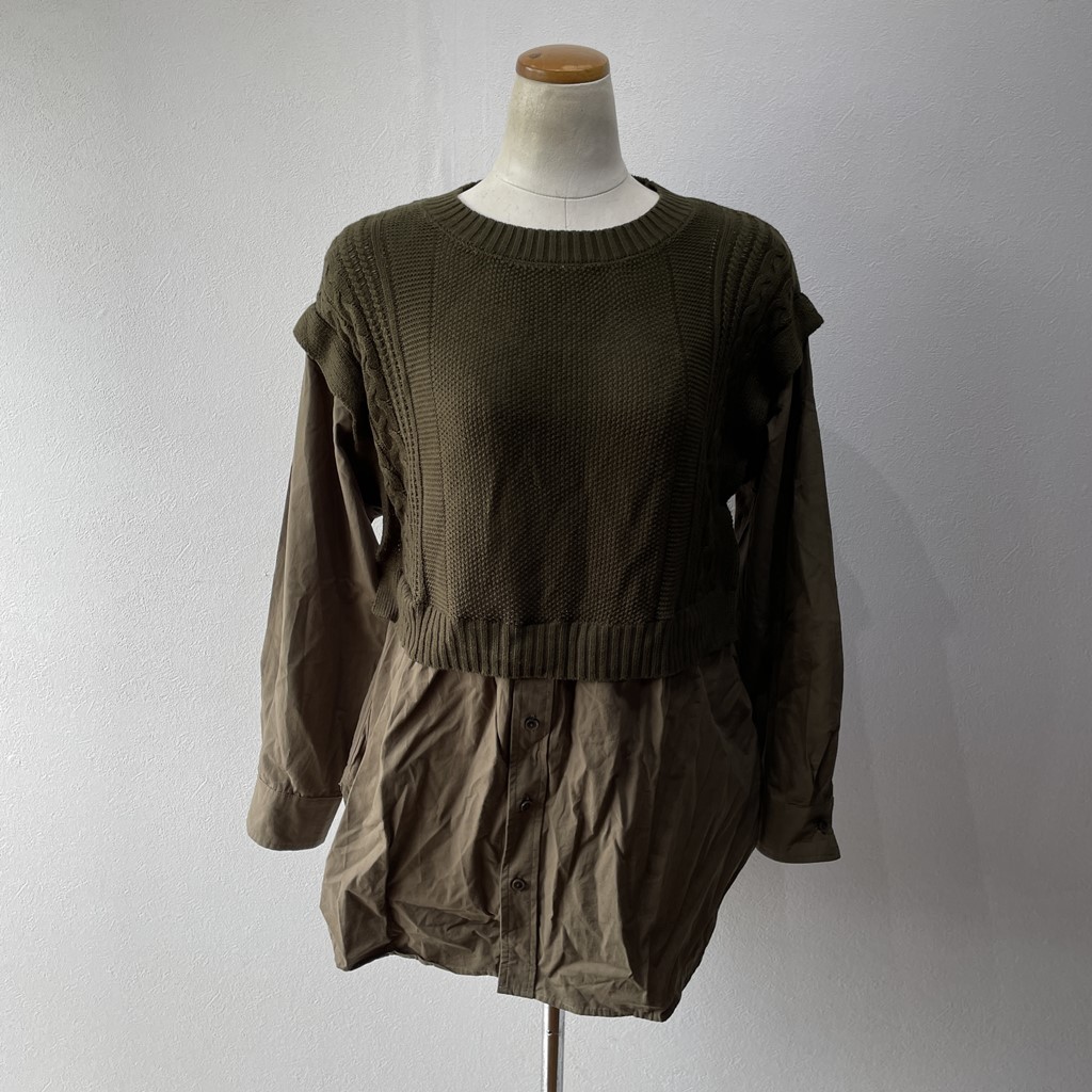 - 【人気】キューブシュガー ニットシャツ レディースMサイズ オリーブ 深緑/ダーク グリーン K2165