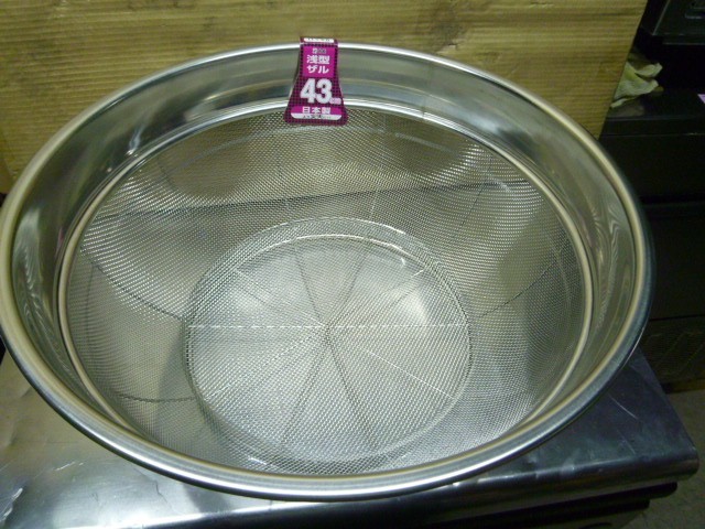 - E200121L@未使用●ステンレス 浅型ザル43cm●K9