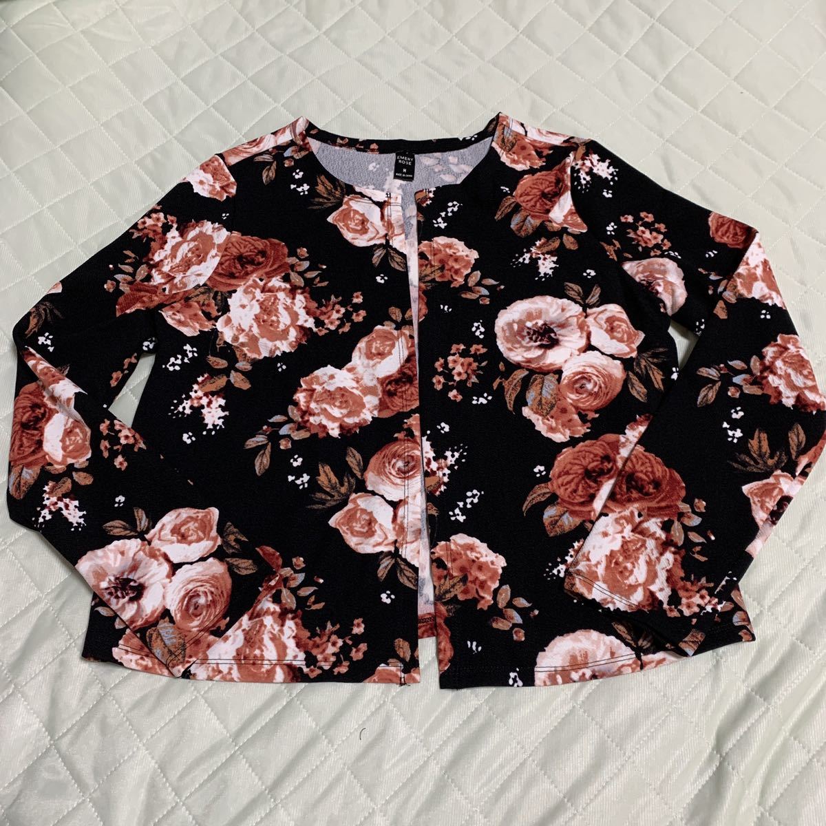 - EMERY ROSE 薔薇 ブラック ノーカラー ジャケット 羽織 M