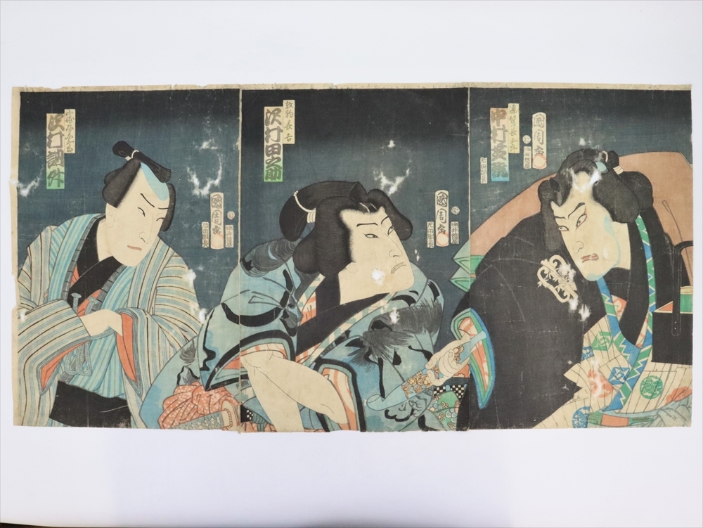 - 【真作】『 国周画 浮世絵 版画 3枚 中村芝翫/沢村田之助/沢村訥升』【S0045蔵出し】