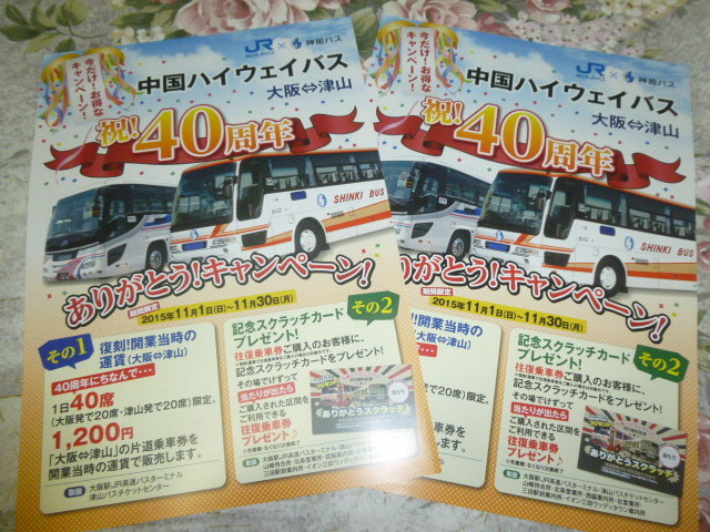 > 送料込み! 2015年 JRバス・神姫バス「中国ハイウェイバス 祝40周年」パンフレット (西日本ジェイアールバス・高速バス・西日本JRバス
