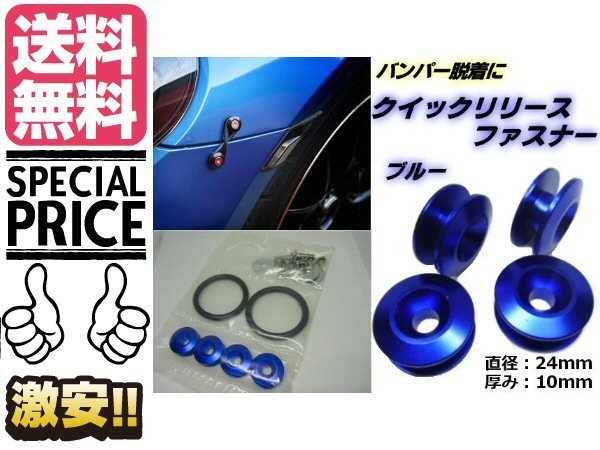 - アルミ製 クイックリリースファスナー 青 メタリックブルー 4個セット 付属品付 バンパー エアロ 脱着 固定 メール便送料無料/6