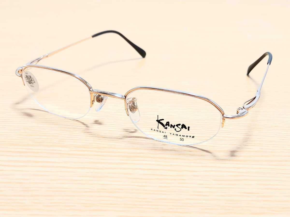 > 新品 KANSAI YAMAMOTO カンサイヤマモト 日本製 メガネ 眼鏡 高級感 オシャレ 上品 ハーフリム 軽い ゴールド