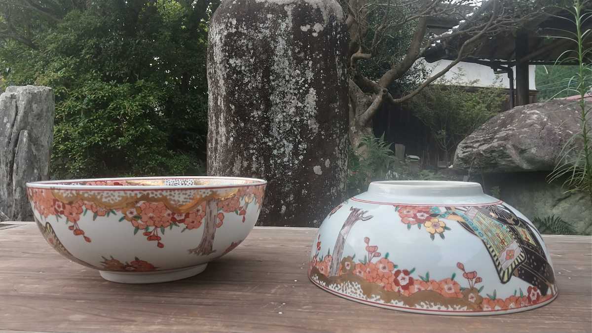 - 秀峰窯 大鉢直径31cm 2点 御所車に桜紋