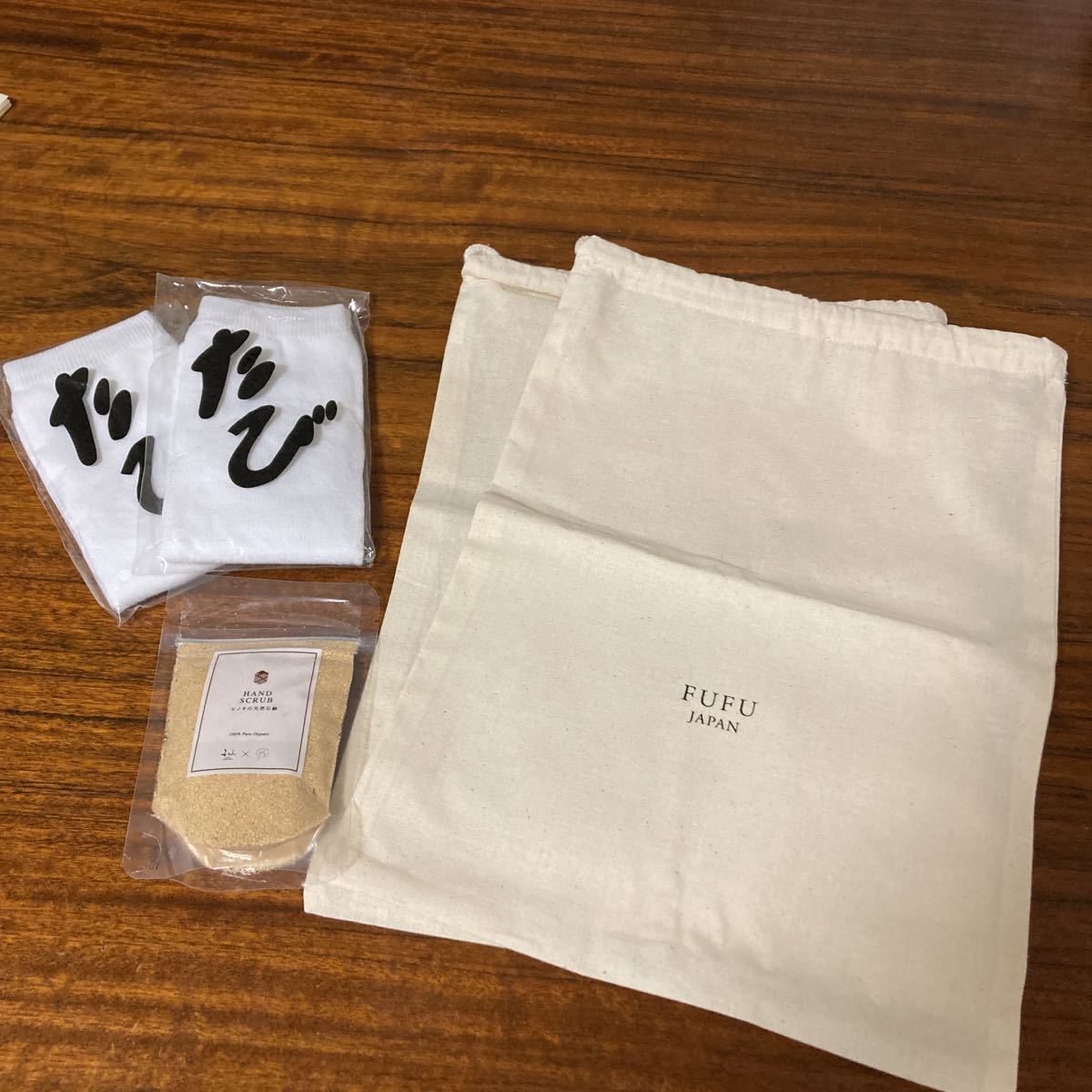 - ふふ 箱根 アメニティ 巾着袋 タビ靴下 ヒノキの天然石鹸 おがくず ハンドスクラブ