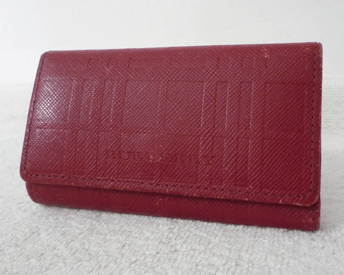 - バーバリー BURBERRY レザー レッドチェック柄エンボス 4連 キーケース