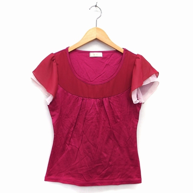 - エフデ ef-de Tシャツ カットソー 丸首 半袖 綿混 無地 切替 シフォン ギャザー 9 レッドパープル 赤紫 ピンク /HT14 レディース