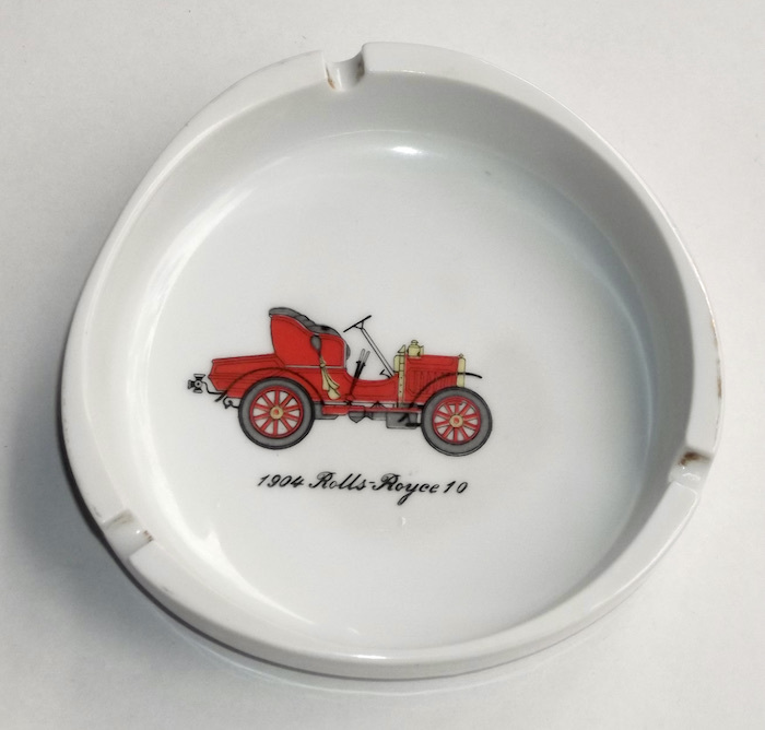 - 昭和 レトロ 灰皿 陶器 クラシック・カー 長崎屋 ノベルティ ロールスロイス 10HP 1904年 企業物 ロゴ マーク 磁器