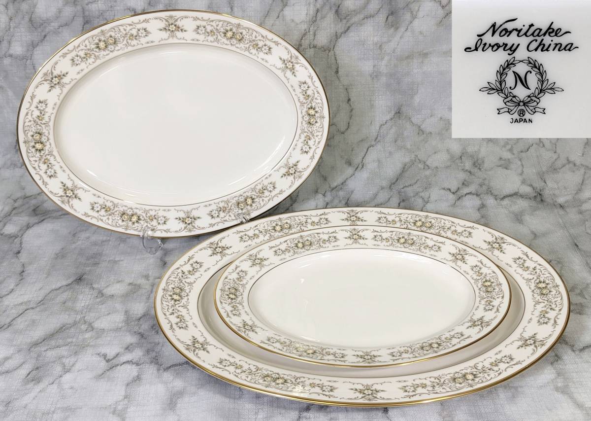 - ★Noritake ノリタケ 大皿×3枚セット アイボリーチャイナ 花柄 オーバルプレート★Large platter サイズ違い レトロ
