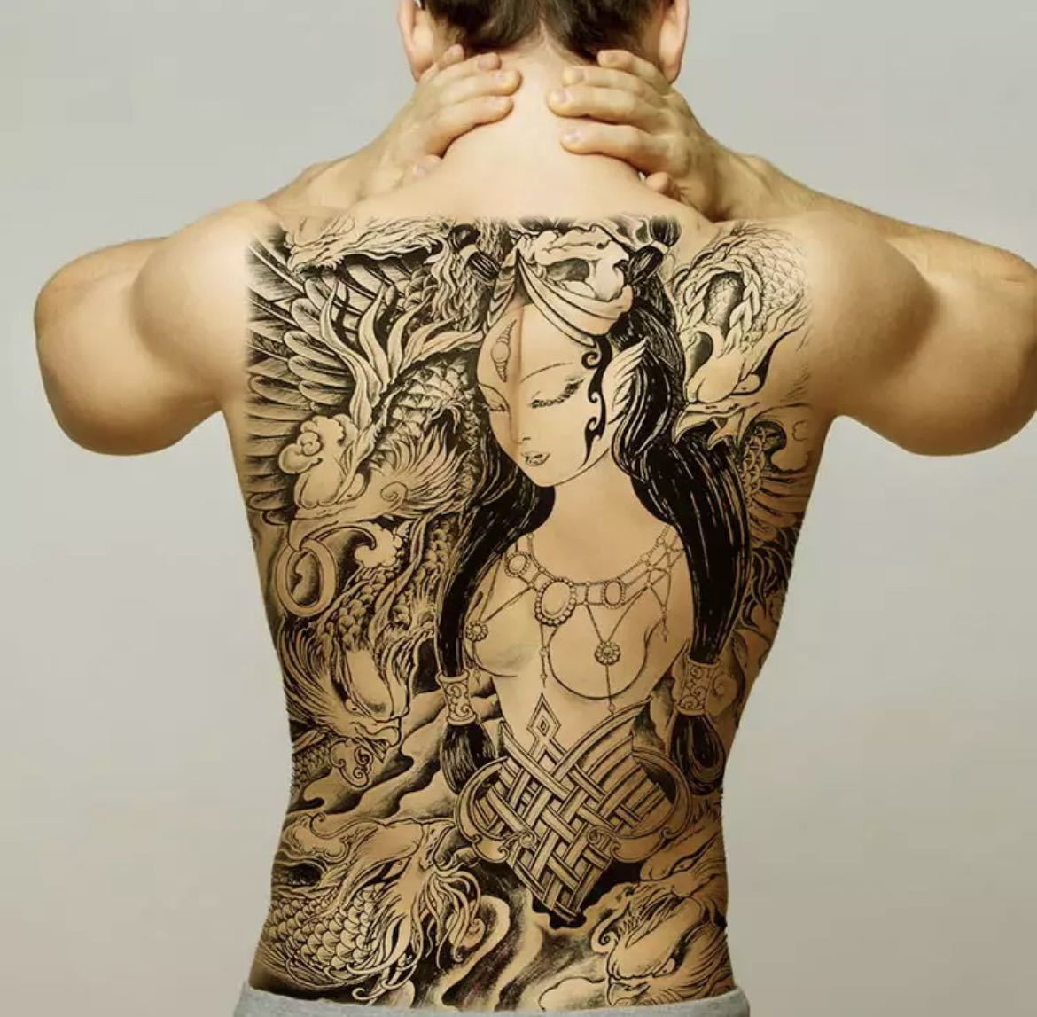 - 48 × 34cm タトゥーステッカー シール 刺青 入れ墨 タトゥー tattoo ボディーアート パーティー ファッション 女神 1622