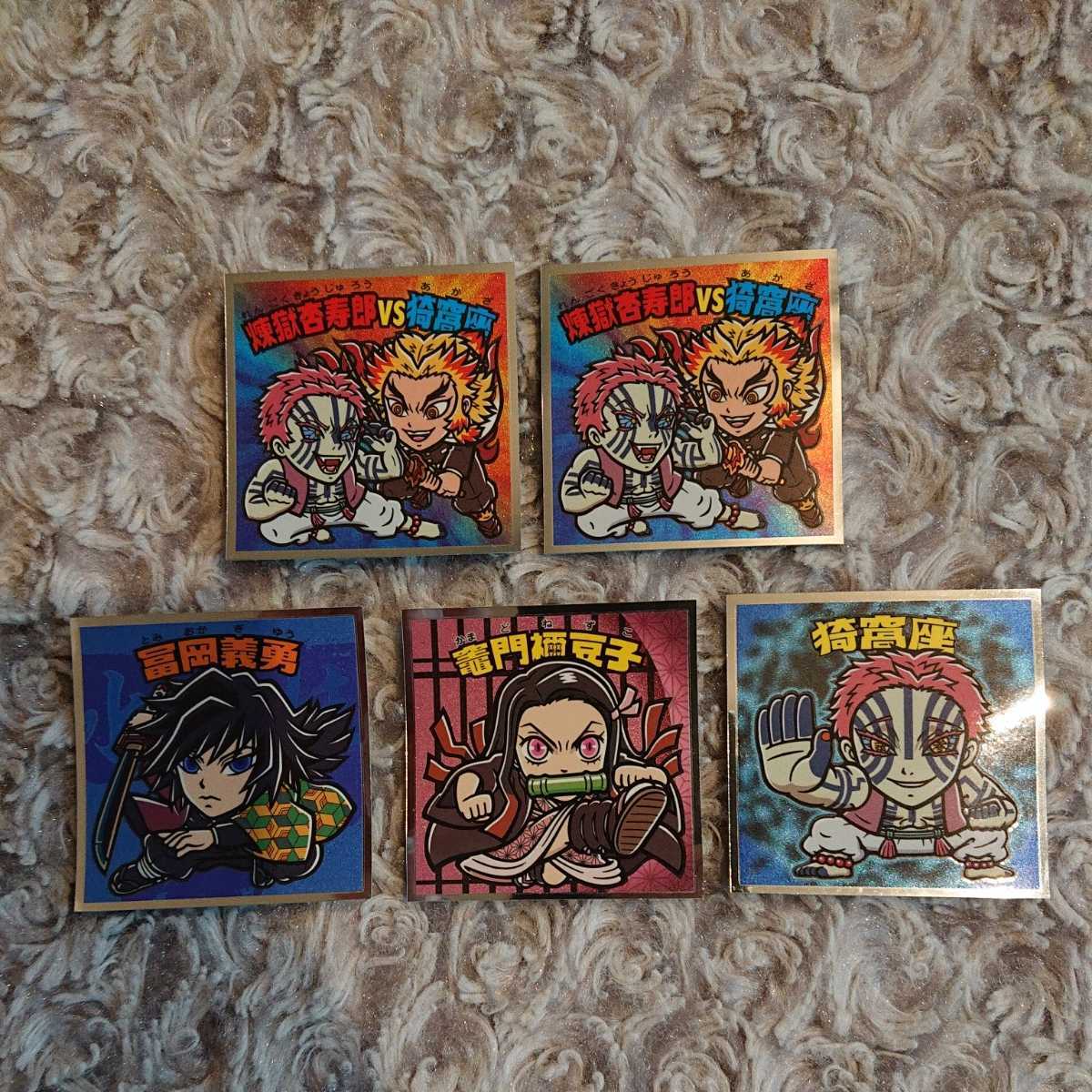 > 鬼滅の刃マン2シール 4種5枚セット ☆ 煉獄杏寿郎VS猗窩座 ×2、 冨岡義勇 、 竈門禰豆子 、 猗窩座 ☆ 煉獄 杏寿郎 冨岡 義勇 竈門 禰豆子