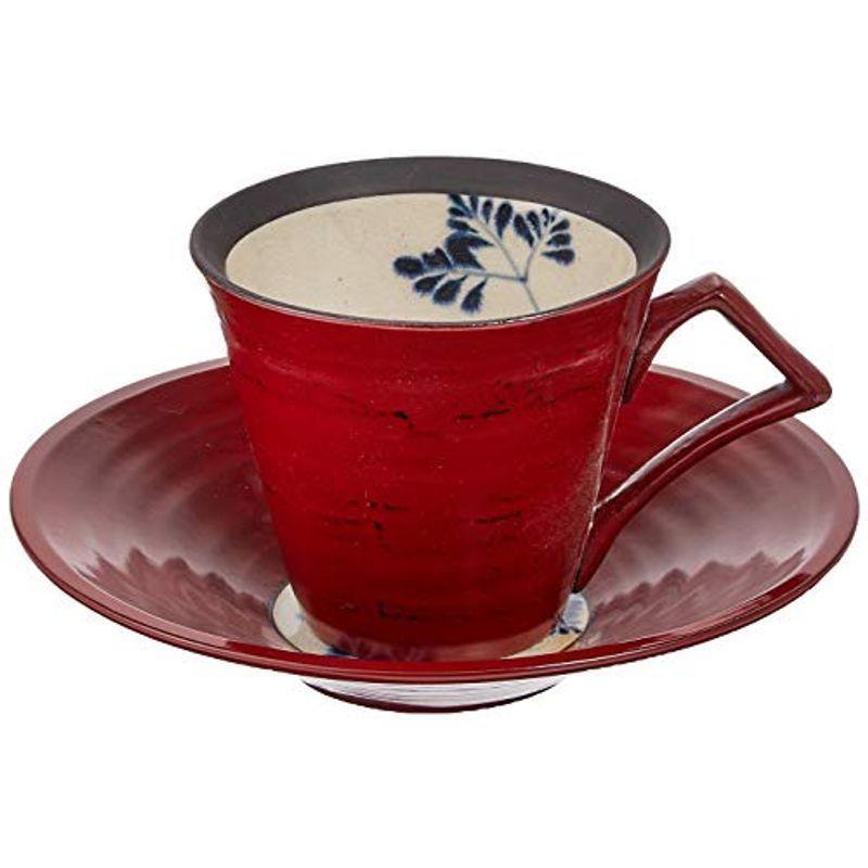 - 美濃焼! ☆漆陶そう吉 しだ曙(赤)コーヒー碗皿☆ V4019-6 新品 コーヒー 紅茶 ミルク ラテ エスプレッソ ギフト