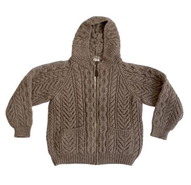 - 90's コンガ AFRICAN SPIRITS Konga フルジップ パーカー フーディ セーター ニット 肉厚 ローゲージ ケーブル編み ブラウン M位 [l-0480]