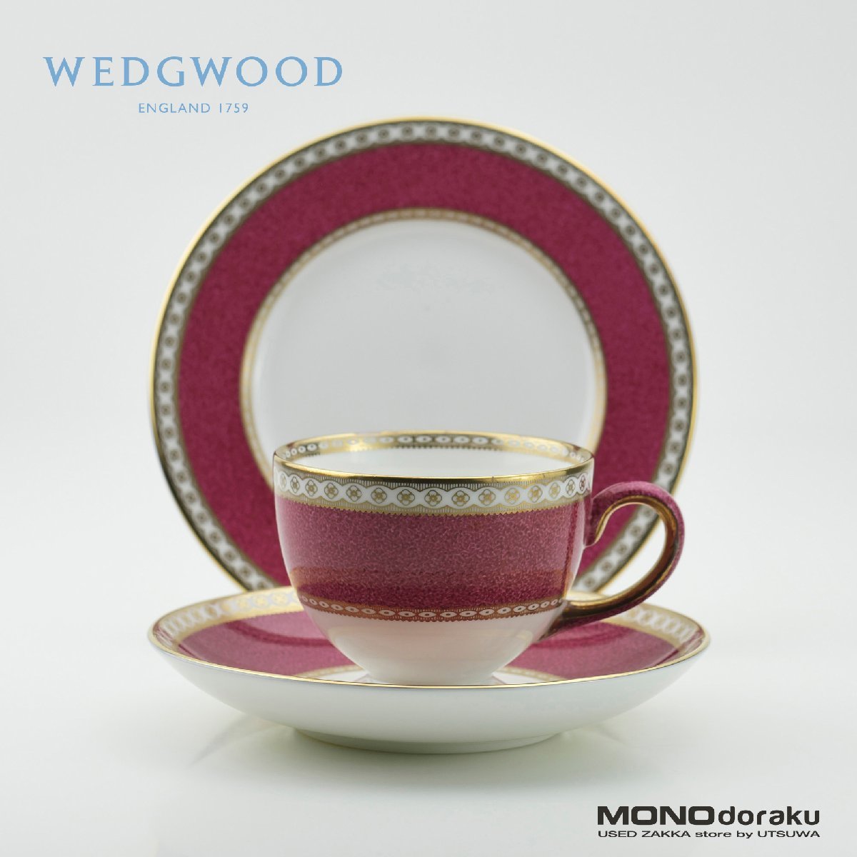> WEDGWOOD/ウェッジウッド ユーランダーパウダールビー カップ&ソーサー・プレート 廃盤品 黒壺印 (4)