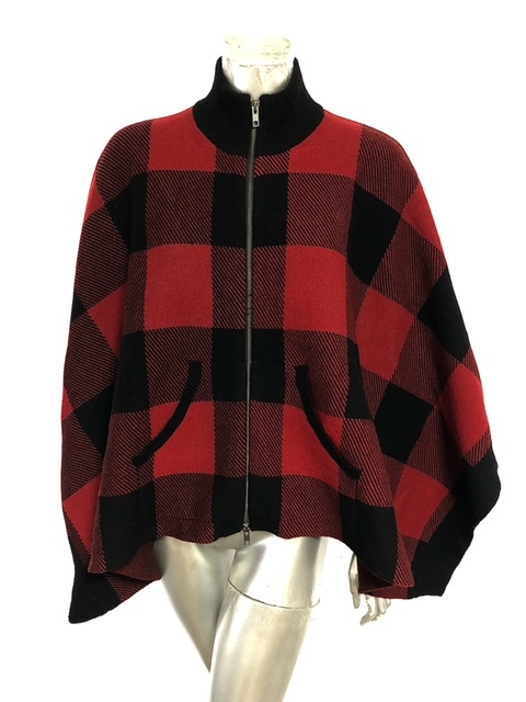 > 二点落札で送料無料! 2A40 美品! LE CIEL BLEU ルシェルブルー ジップアップ ケープ ニット プルオーバー トップス セーター チェック