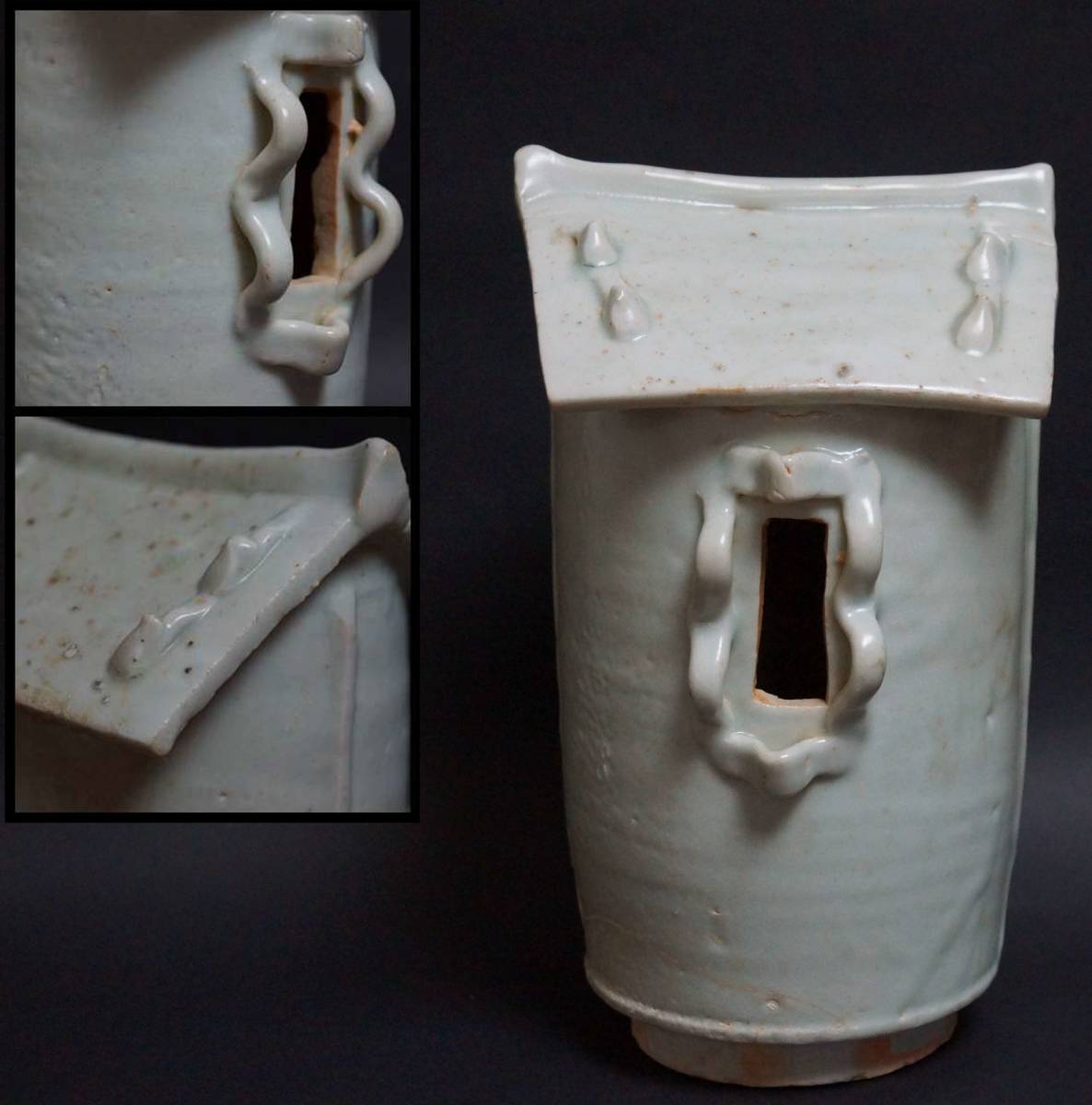 - 【閑】宋時代 青白磁穀倉 置物 影青香炉 越州窯青磁 唐物茶道具 共箱付 古渡★時代物★希少品 4D1116