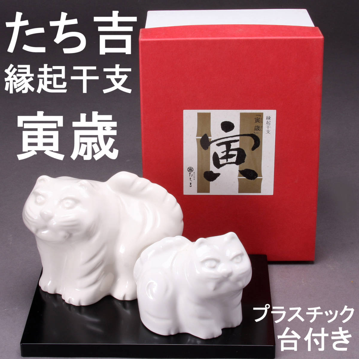 - たち吉 縁起干支 寅歳 親子置物 台、箱付き KA-7479