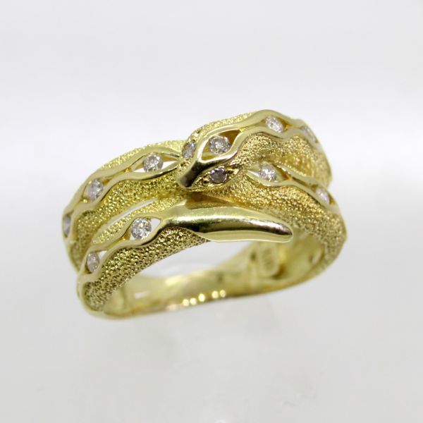 - ◎中古美品◎18金 ダイヤ 0.20ct スネークデザイン リング 11号
