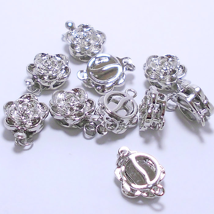 - 薔薇型クラスプ留め金, ニッケルフリー, Brassロジウム, 17x11x6mm, 穴:2mm 10個入り 送料無料 A299