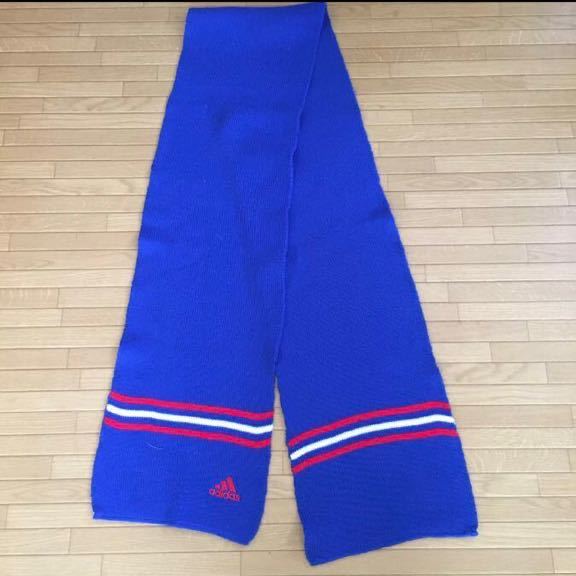 - 長くて暖かアディダス ロングニットマフラー 24×170センチ サッカー 青 ブルー スヌード