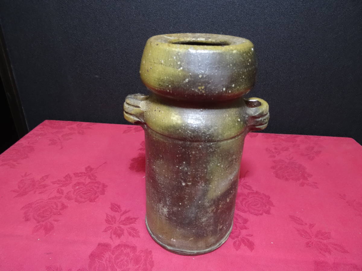 - 備前焼 花入 耳付き花びん 花器 花びん サイズ約高さ20cm底直径10cm ekt1-28