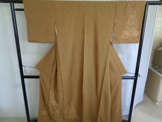 - A301-80 正絹 ちりめん 中振袖 一つ紋刺繍 裾袖口綿入り 総菊地紋様 金彩 花草文 着物 裄62センチ 着丈152センチ 昭和レトロ アンティーク