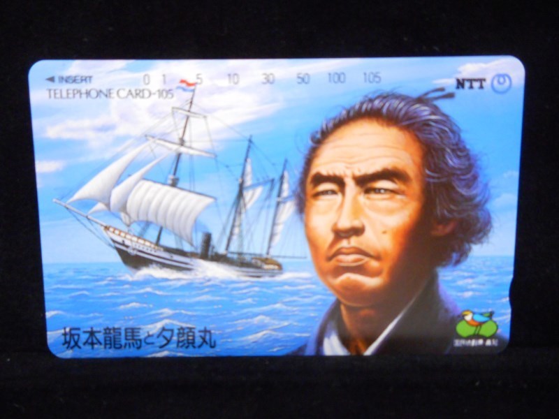 - テレカ 105度数 坂本龍馬と夕顔丸 イラスト 未使用 T-7106