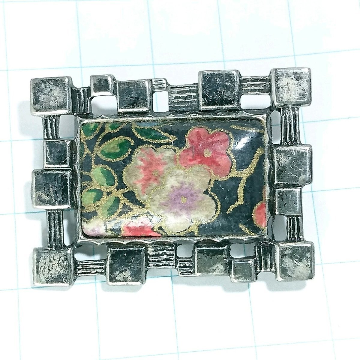- 送料無料)ビンテージ☆七宝焼き お花モチーフ ☆アティークブローチ A13259