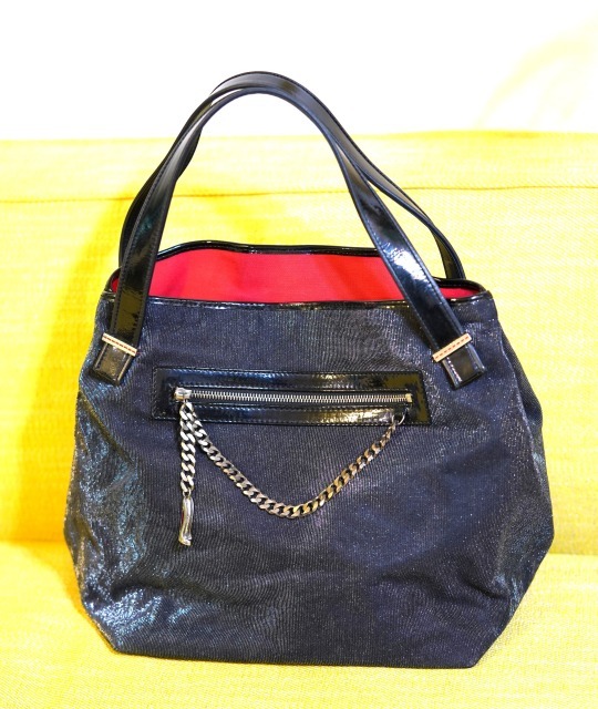 - クリスチャンルブタン トート ナイロン レザー ブラック レッド ハンドバッグ