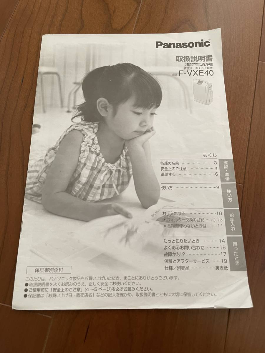 - ※説明書 Panasonic パナソニック 加湿空気清浄機 F-VXE40 切手 ハガキ可能