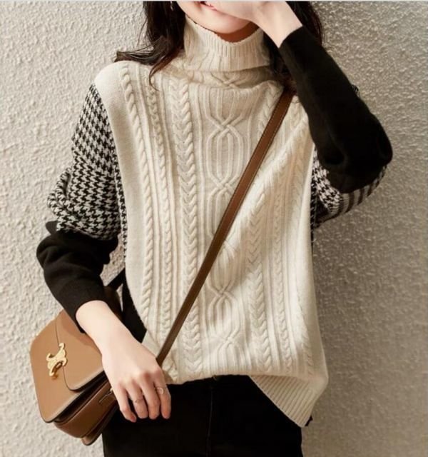 - PYD2303★XL サイズ♪秋冬ネッ きれいめ ニットセーター ニ 上質大人 タートルットトック 千鳥格柄 ミンクカシミヤ混 暖かいプス * 白