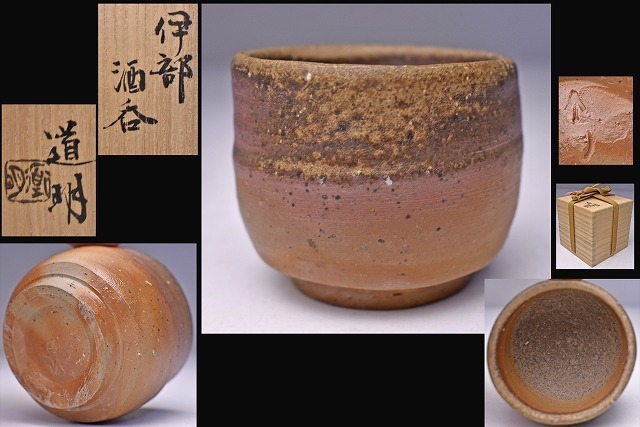 > 金重道明 ★ 伊部ぐい呑 ★ 共箱 ★ 備前焼 人気陶芸家 ★ 人間国宝 金重陶陽 の子 ★ 金重素山 ゆかり