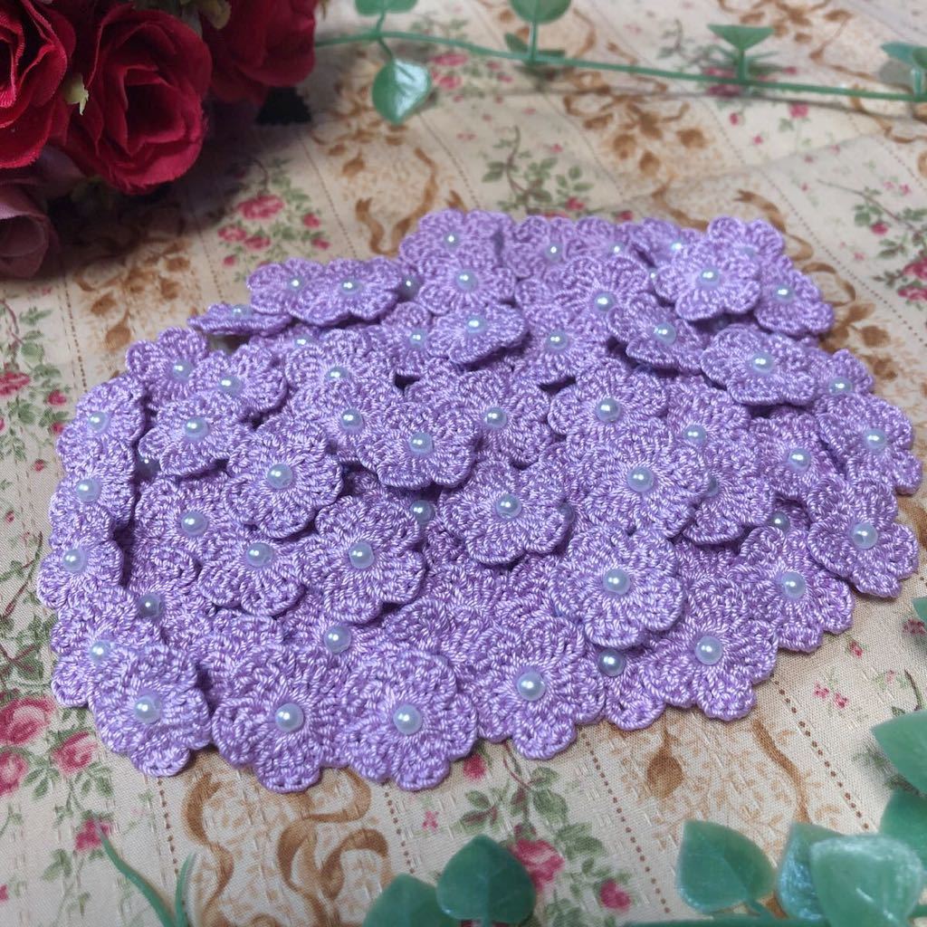 > (No.7)☆ハンドメイド☆可愛いお花(^^)100枚【ウィステリアパープル】パールビーズ付き モチーフ パーツ等に