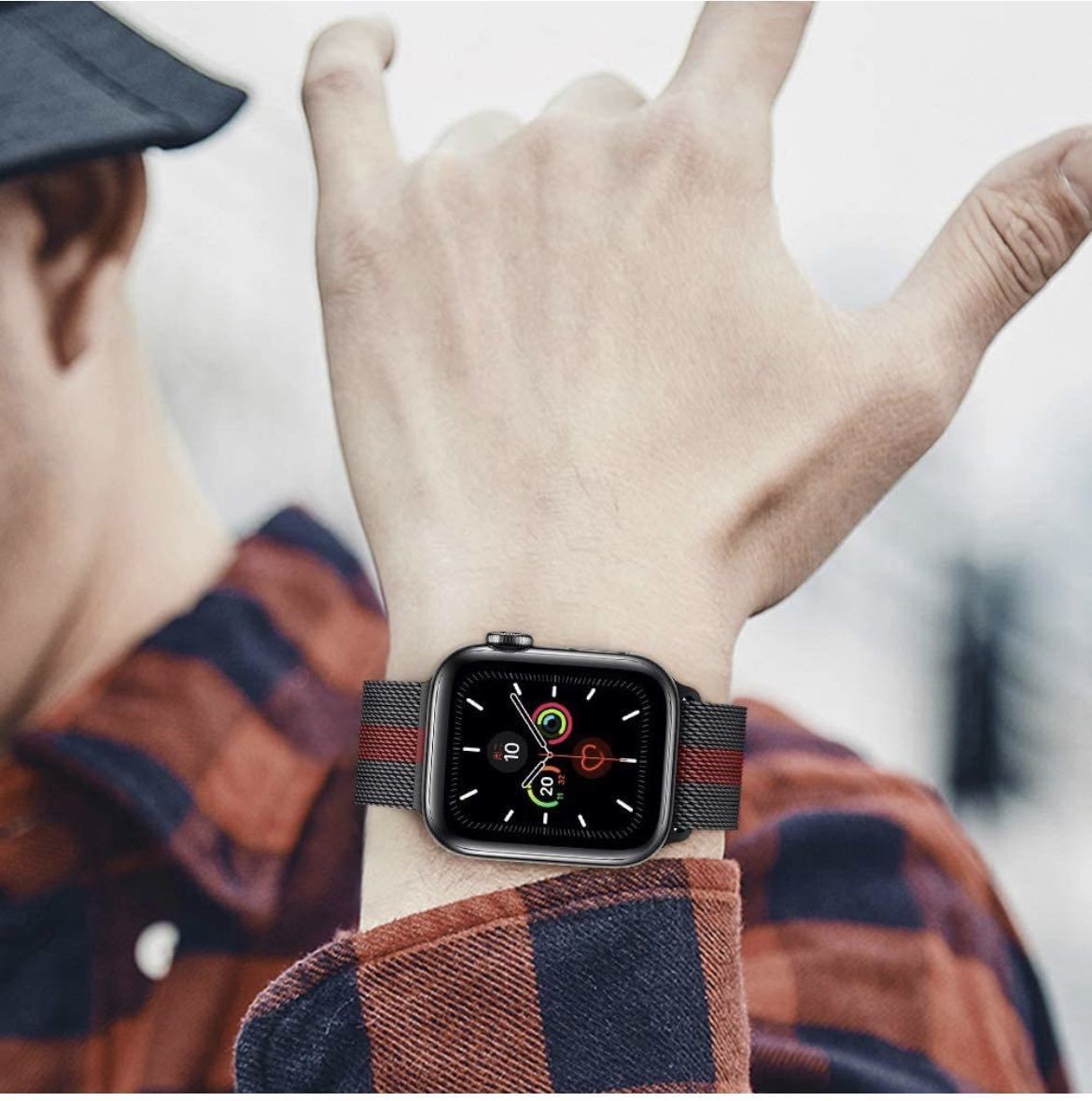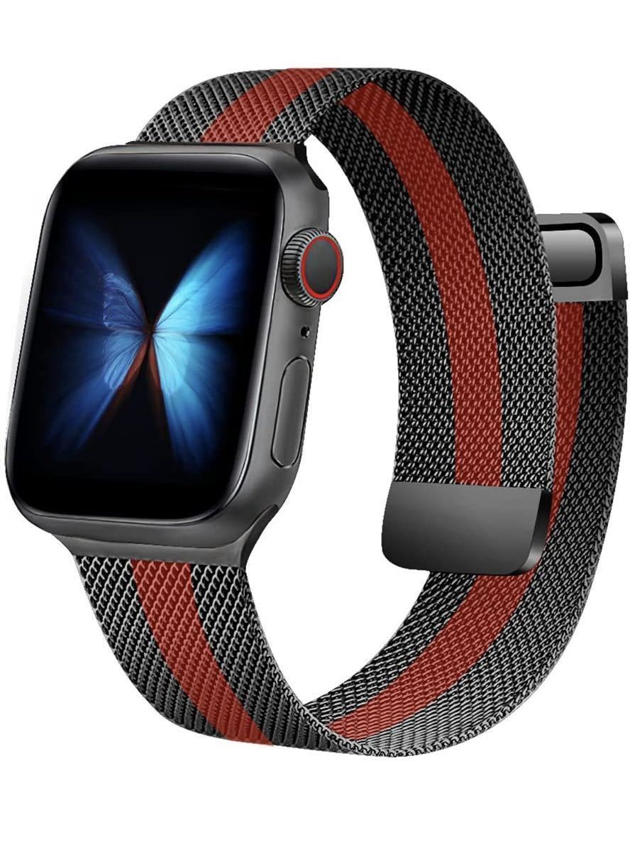 - Apple Watchアップルウォッチ バンド42/44/45/49mm 交換ベルト 金属ステンレス 磁石留め シリーズ2345678SE対応 工具不要 赤黒
