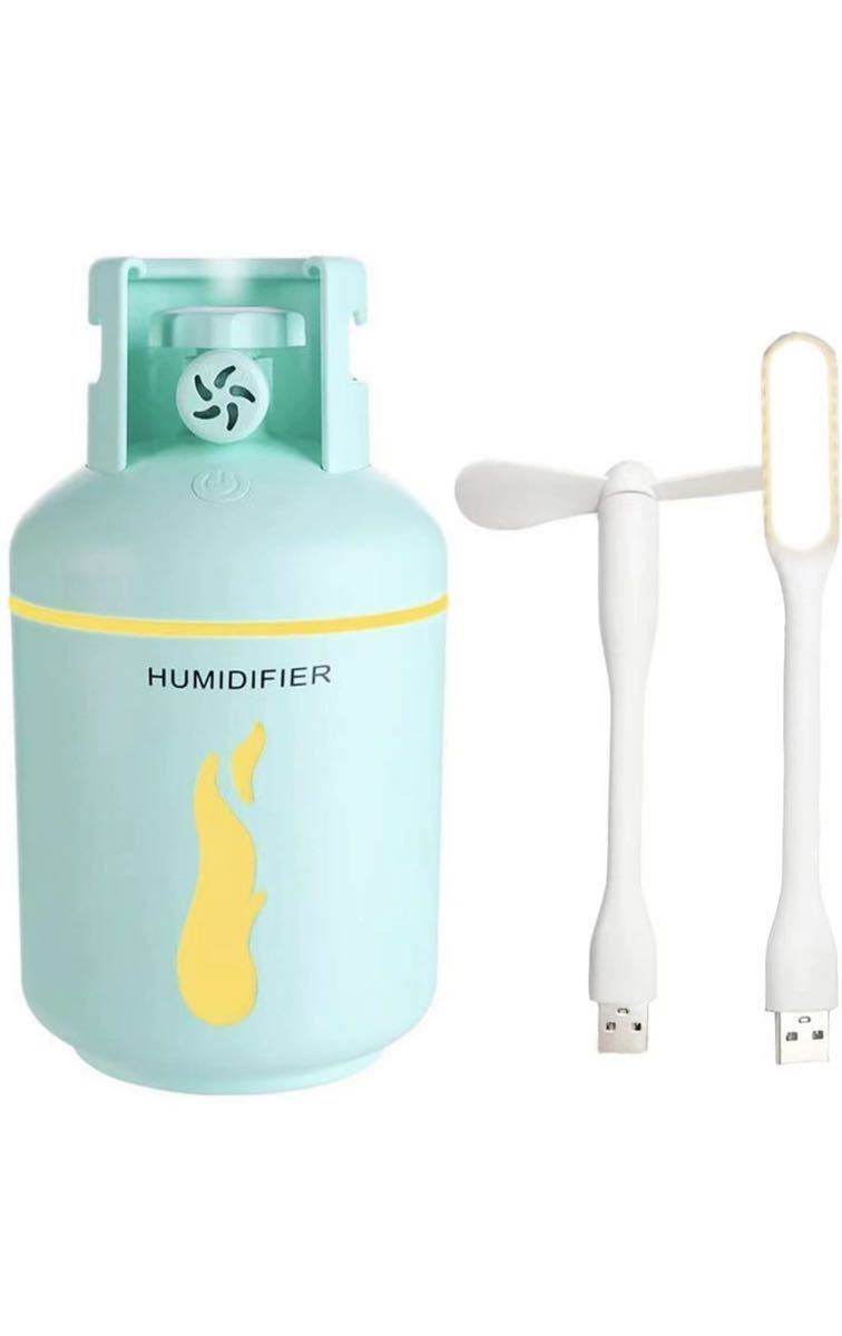 - 加湿器 卓上 超音波式 大容量 300ML 水溶性アロマ対応 車用加湿器 LEDライト 静音乾燥対策 USB接続タイプ 扇風機とライト付き グリーン