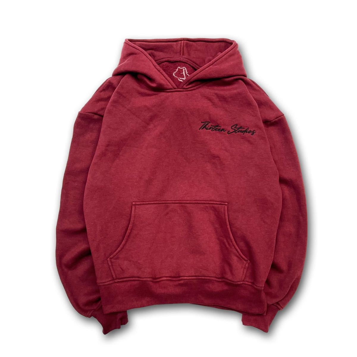 > Thirteen Studios Acid Washed Hoodie スウェット パーカー NuBiAn cherry XL
